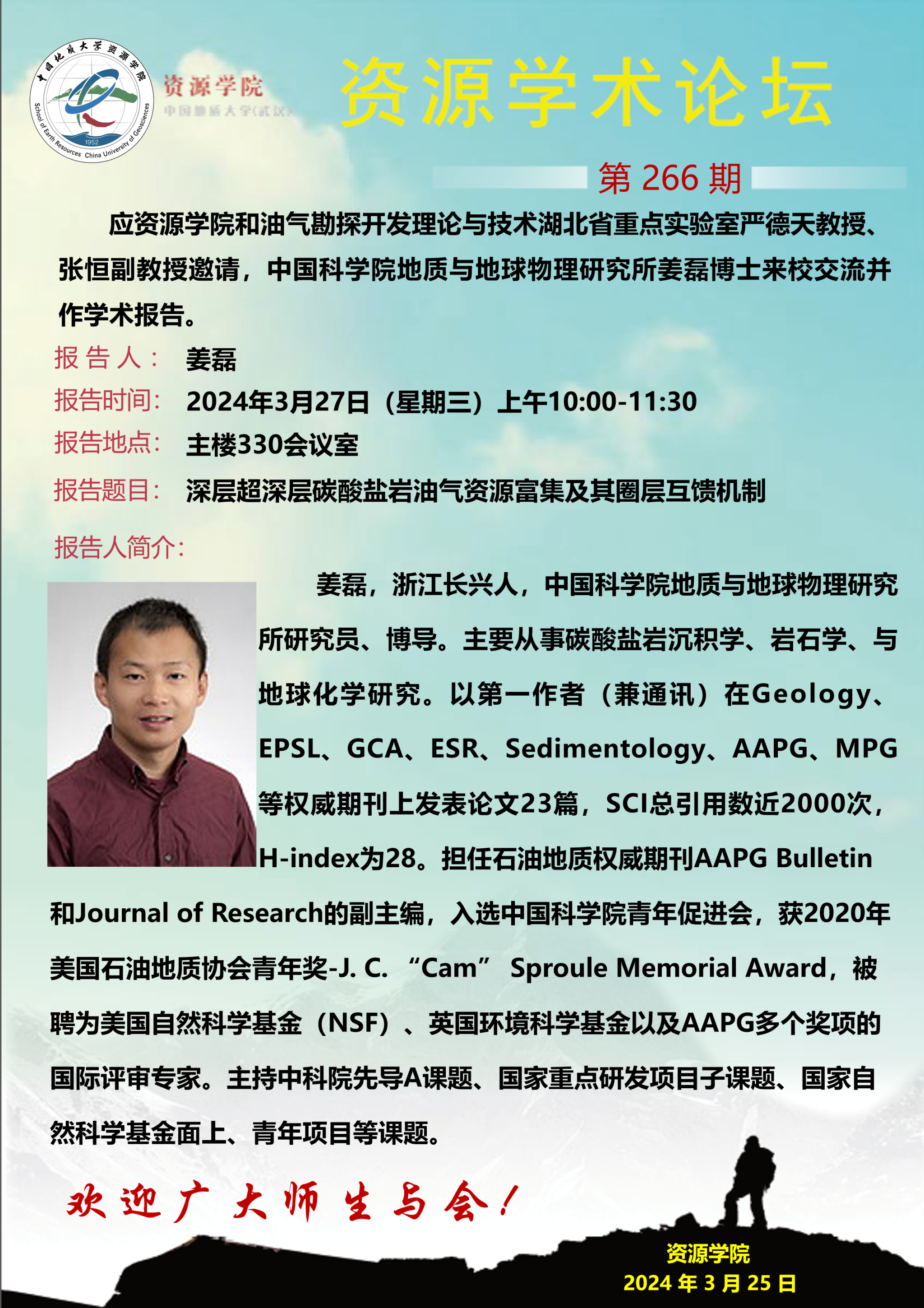 【3月27日】第266期资源学术论坛:姜磊学术报告