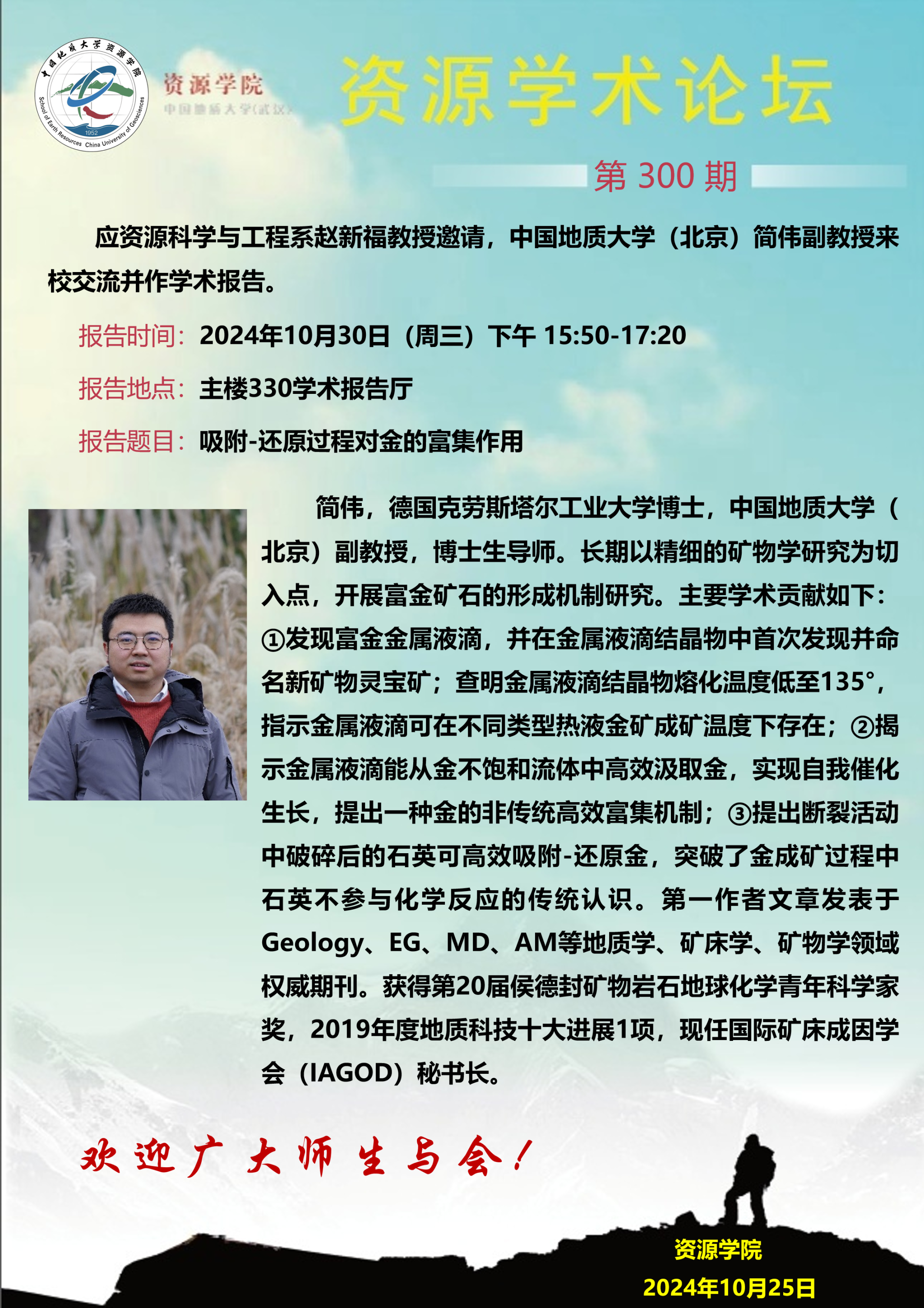【10月30日】第300期资源学术论坛:简伟学术报告