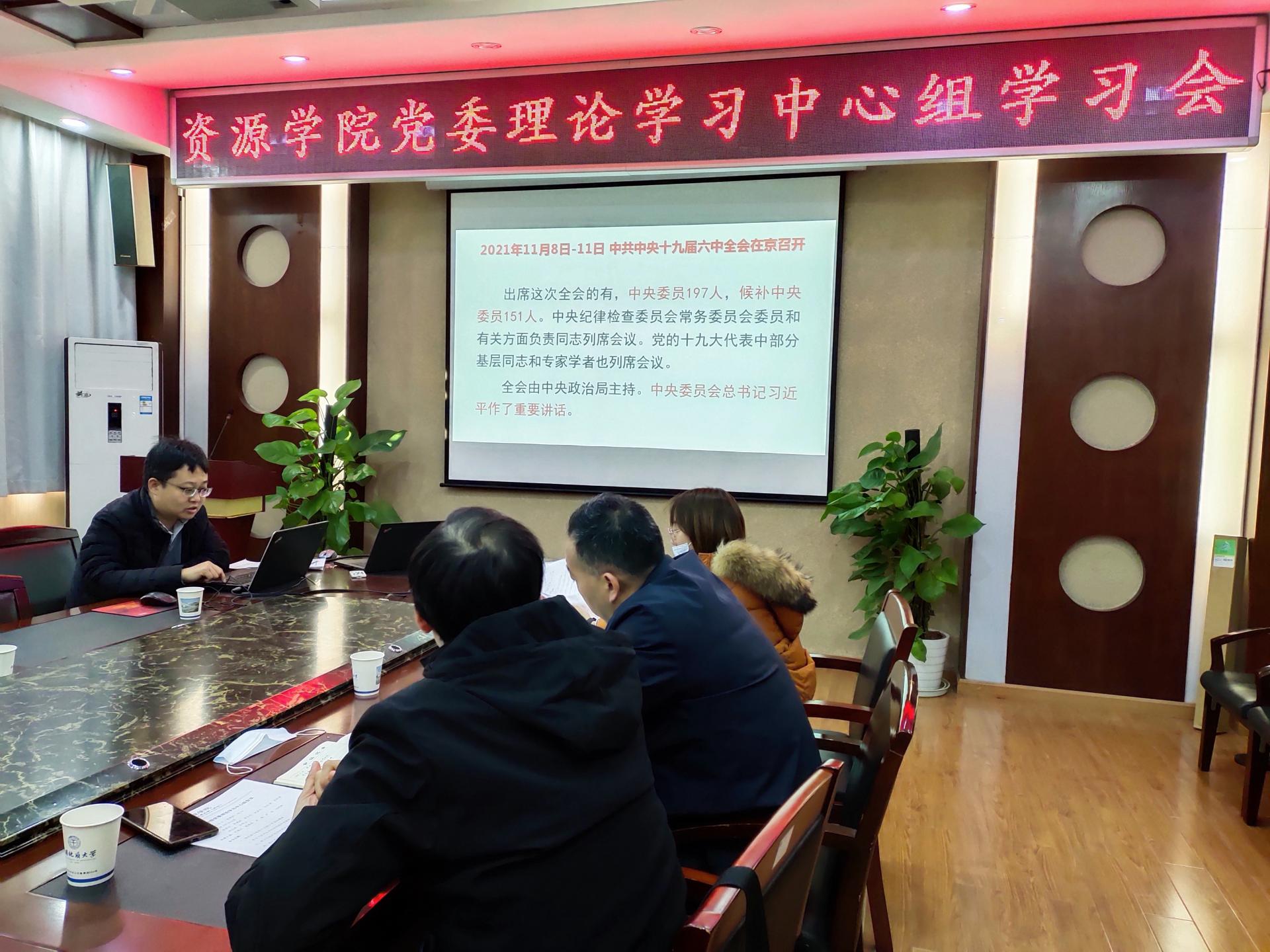 11月25日,资源学院党委理论学习中心组举行集体学习,传达学习党的十九届六中全会精神、习近平总书记在纪念辛亥革命110周年大会上的重要讲话精神和在中央人才工作会议上的重要讲话精神,部署了学院党史学习教育和师德师风建设等工作。院党委理论学习中心组成员、党史学习教育专题读书班成员参加会议,院办、工会、团委负责人列席会议。党委书记高复阳主持会议。