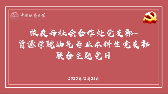 为深入学习宣传贯彻党的二十大精神,推进师生党支部“结对领航”,12月28日,校友与社会合作处党支部与资源学院油气专业本科生党支部联合开展12月主题党日活动。校友与社会合作处党支部全体成员,资源学院党委副书记谭文伦,资源学院油气专业本科生党支部党建指导员刘明辉,支部全体党员、入党积极分子共计70余人参加主题党日,刘明辉主持。