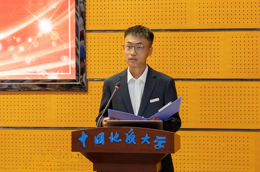 新生代表、02D236班王嘉桐同学分享了自己与地大结缘的故事,畅享了未来的大学生活,倡议同学们立足于时代要求,求实进取,砥砺前行,主动担当服务和保障国家资源能源事业安全与发展的历史重任。