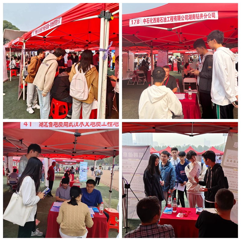 据了解,10月29日上午在我校西区运动场举办的“‘湖北百校联动’毕业生供需见面会暨‘宏志助航计划’专场招聘会”由湖北省教育厅主办,中国地质大学(武汉)承办,共有350余家企事业单位参会,涉及地质、建筑、制造、能源、IT、教育、金融等多个行业领域,其中武汉东湖高新区组织60余家单位参会,陕西地矿集团有限公司组织14家下属单位参会,河北省地质矿产勘查开发局组织21家下属单位参会。