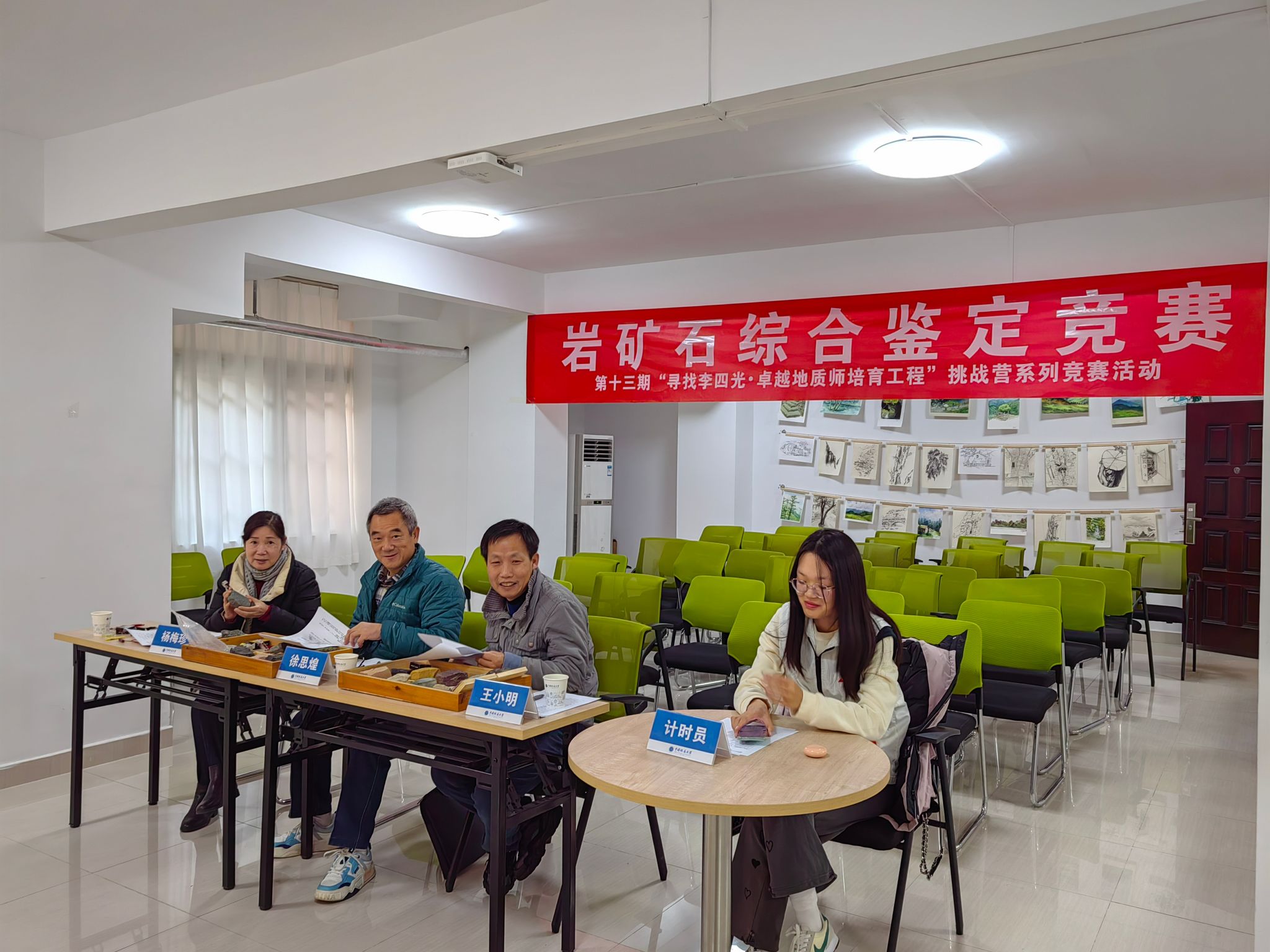 较往届活动,本次赛事创新了比赛形式,邀请不同专业领域的老师到现场及时地、直接地指导学生们的岩矿鉴定过程,确保参赛学生能够学会、学懂、能用,真正拓展了专业技能培养的新形式、新方法。周江羽、徐思煌、杨梅珍、王小明、李晶、张鹏飞等评委老师为选手们提供悉心指导和耐心教学;江满容、陆建培等老师在光、薄片鉴定环节的准备工作和现场指导过程中提供了大力支持;组委会和志愿者同学们倾情付出,顺利完成精选标本、组织抽签、布置场地、筹备物料、现在引导、完成计时等工作,保障了赛事的顺利有序开展。