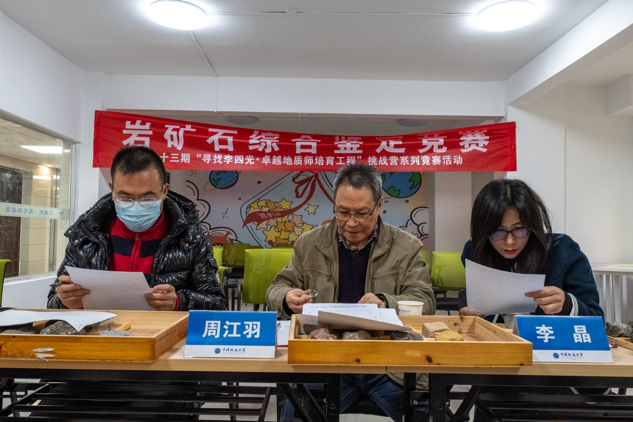评委老师根据参赛小组的回答情况,指出存在的问题,就岩石中的矿物组成和结构关系等与同学们展开讨论。最后,参赛选手在老师的细心点拨和引导下,结合自己进一步的观察,逐步加深了对岩石标本的认识,并且增强了手标本鉴定的技能。