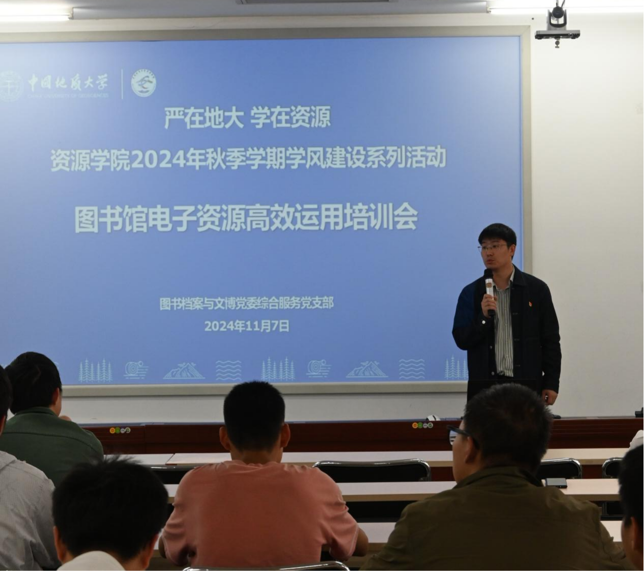 11月7日,资源学院基地班本科生党支部于图书馆10楼报告厅举行电子资源高效运用暨英语四六级考试经验分享会。活动分别邀请了校图书馆老师介绍如何使用图书馆电子资源以及吴佳桁同学分享四六级备考经验。
