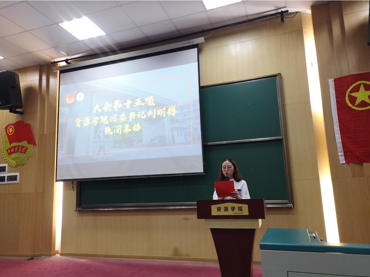 院团委书记刘明辉致闭幕辞。他相信选举产生的新一届学生代表大会委员一定会脚踏实地,努力完成好大会确定的各项任务,不辜负各位代表的期望。也希望也希望全体代表发扬“求实奋进,勇攀高峰”的院风学风,践行“求是创新,厚德奉献”的资源人价值观,为开创资源学院团学工作的新局面做出贡献,为把我院建成资源能源领域国际知名的人才培养基地和学科研究中心接续奋斗。