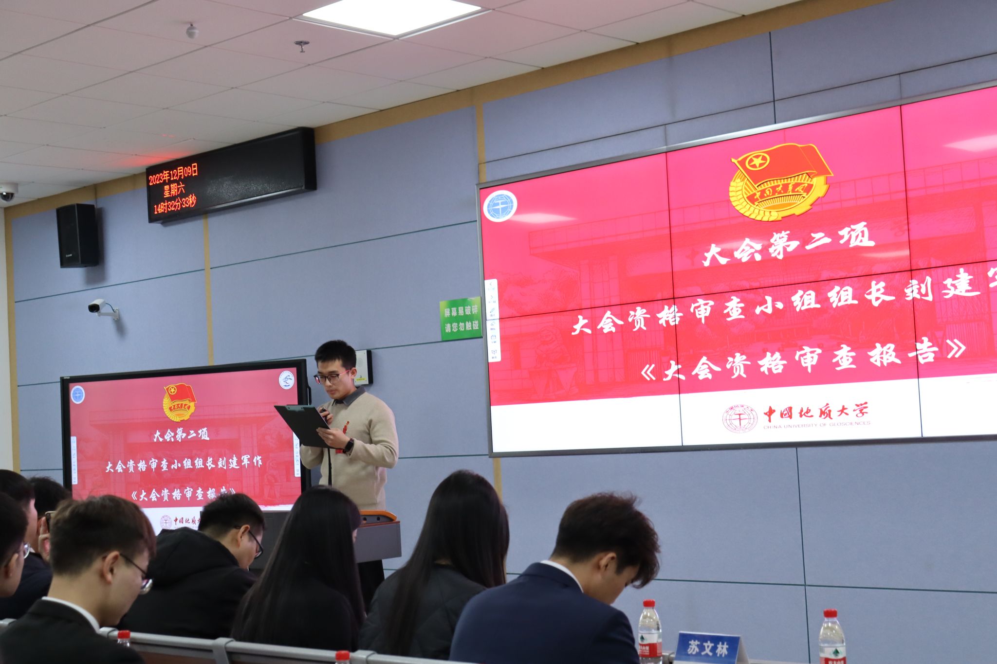 谭语嫣宣读《关于同意召开中国地质大学(武汉)资源学院第十二次研究生代表大会的批复》。