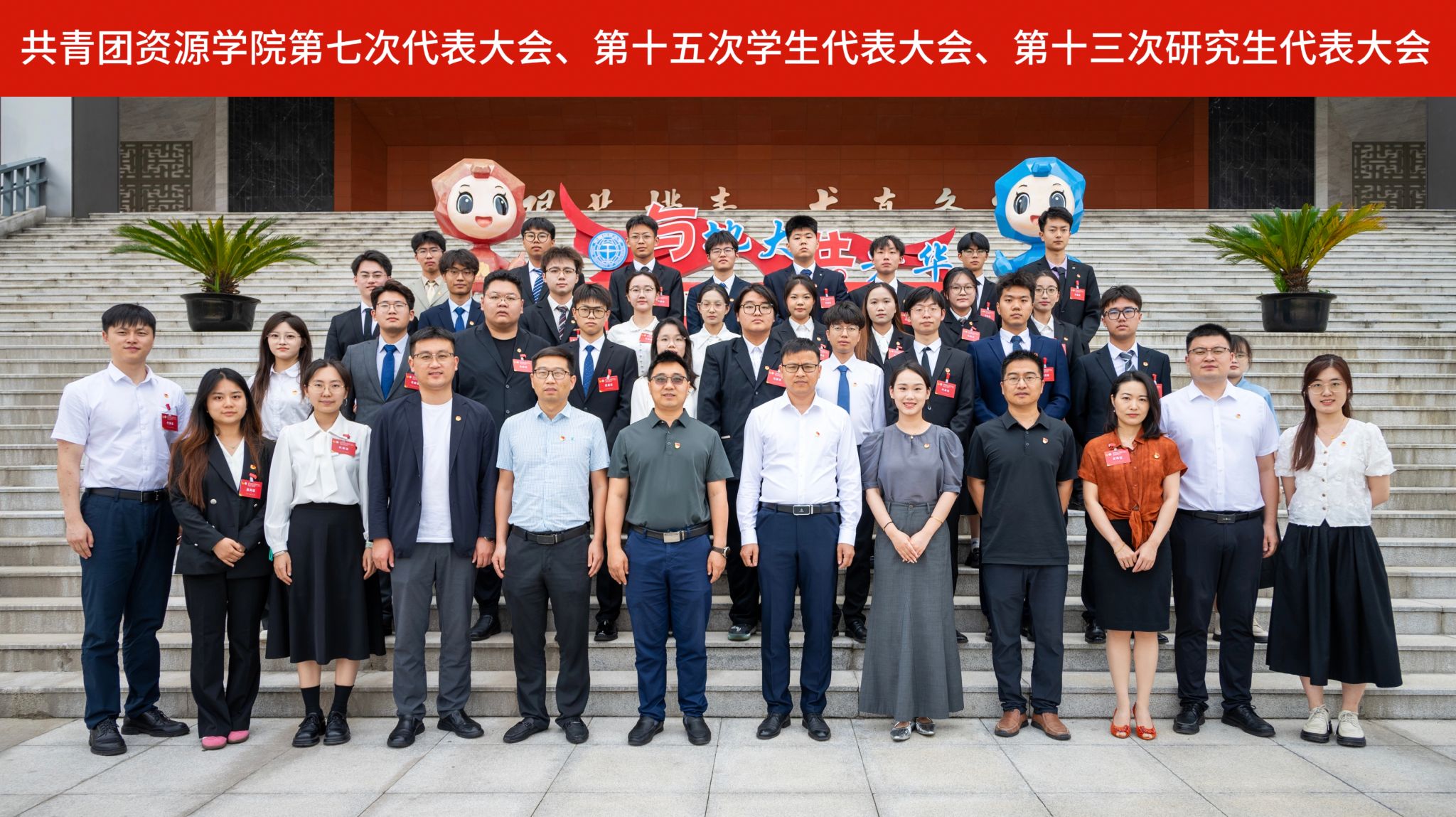 (通讯员 裴秀璟 刘睿 摄影 李飞喜 薛家铭)5月25日,共青团资源学院第七次代表大会、第十五次学生代表大会、第十三次研究生代表大会召开。中南财经政法大学金融学院、我校海洋学院等兄弟单位团委代表,校学生会、研究生会等学生组织代表到会祝贺;武汉大学信息管理学院、华中科技大学电气与电子工程学院等校内外兄弟学院团委发来贺信。校团委副书记刘文龙,资源学院党委书记汪再奇,党委副书记谭文伦,工会主席平宏伟,团委、青教联负责人,全体专兼职辅导员和173名大会代表参加了会议。