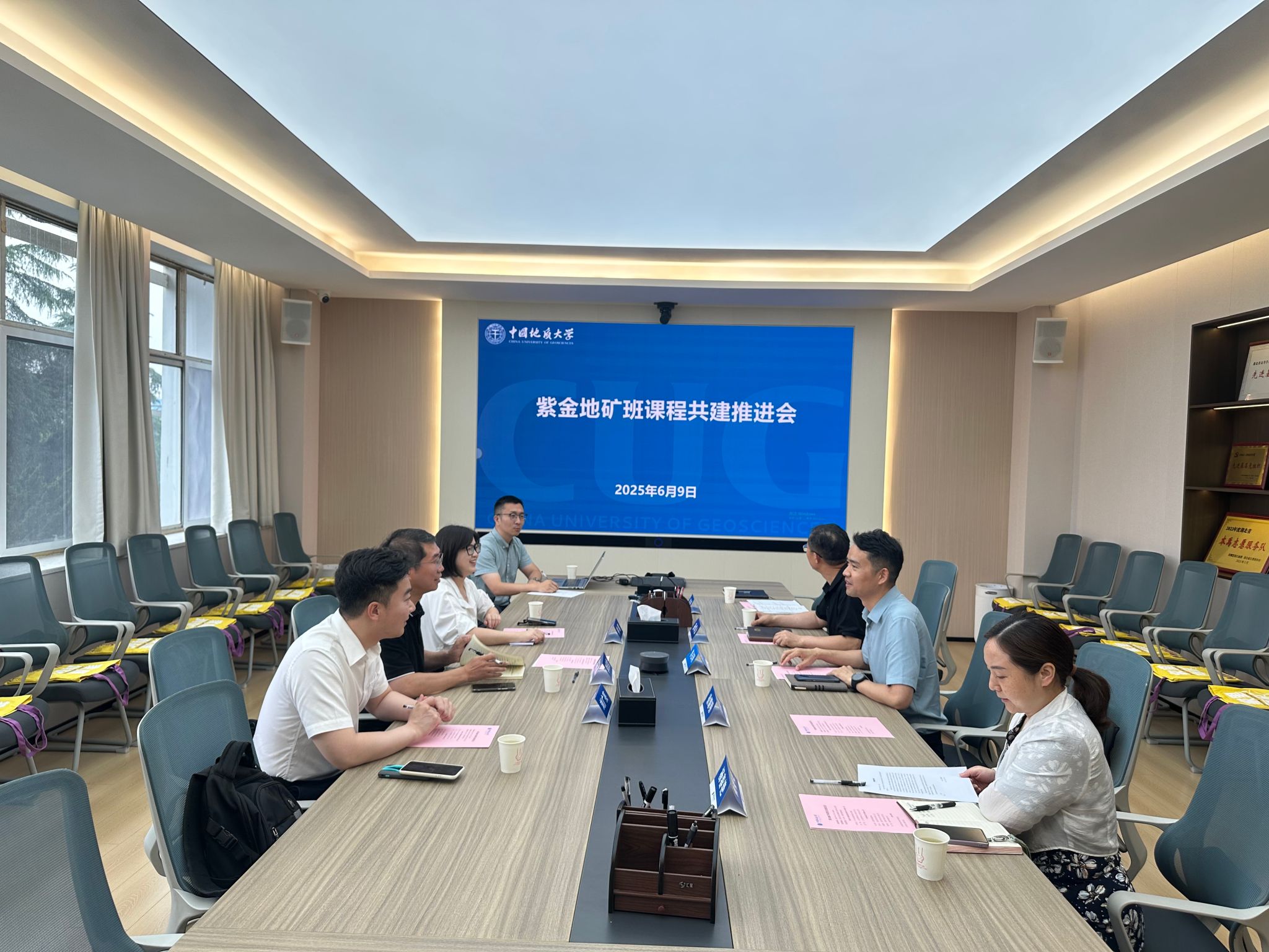 签约仪式前,双方举行紫金地矿班课程共建推进会,李庆哲一行参观了地勘楼相关教学科研实验室。