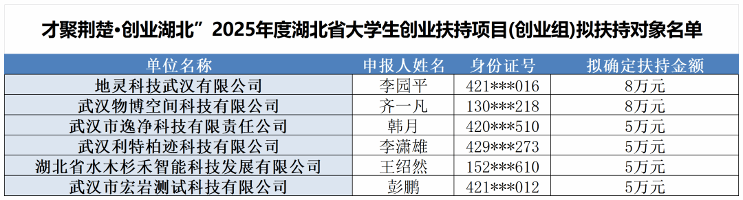 (通讯员 刘睿)近日,2025年度湖北省大学生创业扶持项目名单正式公示。资源学院共有2个大学生创业项目成功入选,共获13w万元无偿扶持资金,展现了资源学院大学生创新创业教育的务实进展。