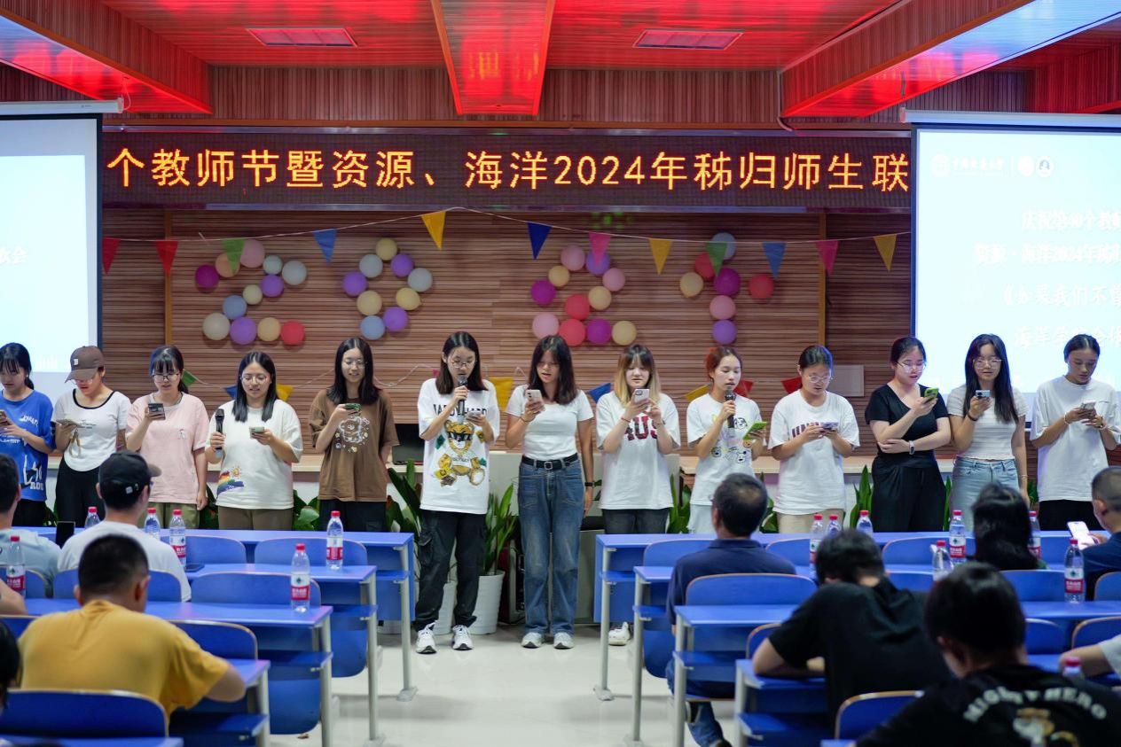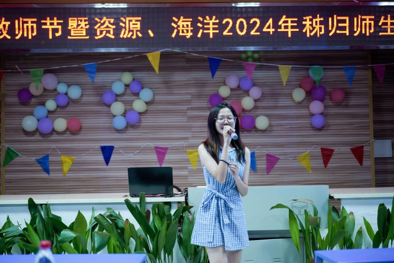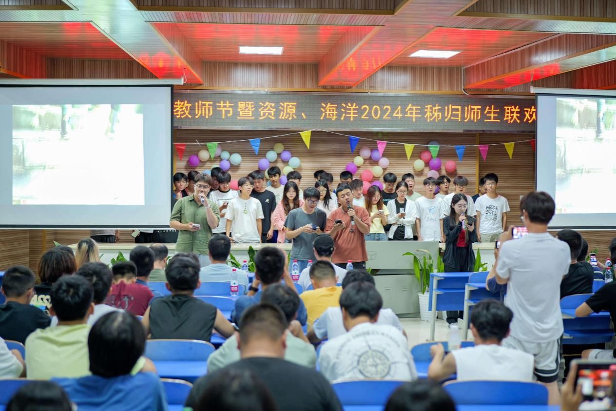 (通讯 陈权 管晨璐;摄影 李卓华 后亚琴)在金秋送爽、硕果累累的季节里,我们迎来了第四十个教师节。9月10日晚,资源学院与海洋学院的师生们欢聚一堂,在秭归实习基地共同举办“庆祝第40个教师节暨资源、海洋2024年秭归师生联欢会”。资源学院学生唐果、海洋学院学生张灿担任晚会主持。