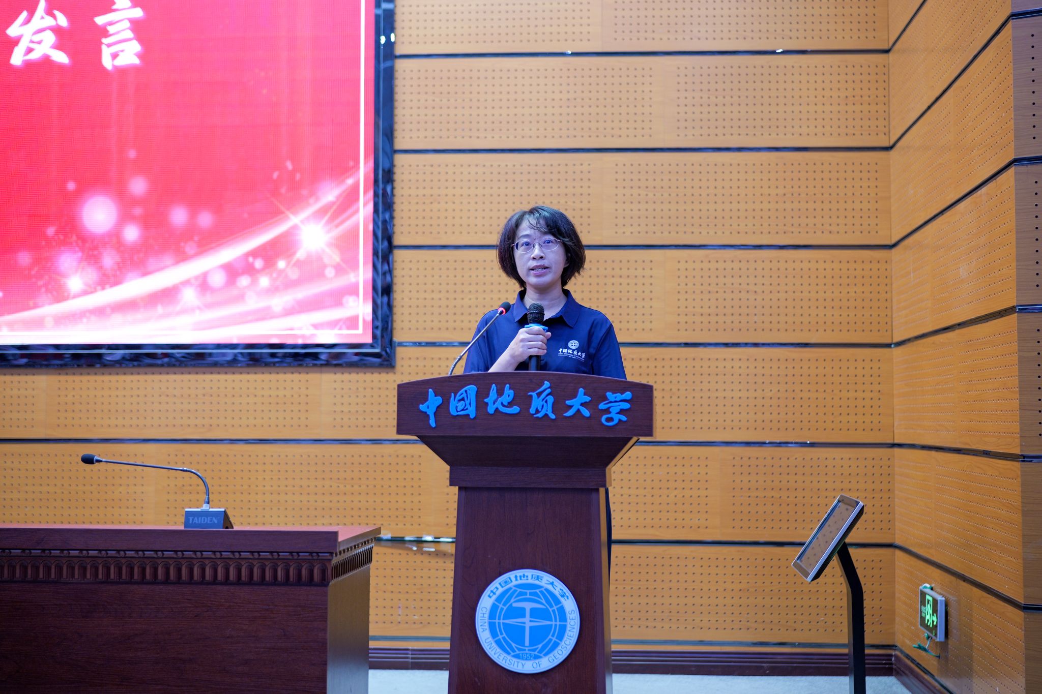 研究生新生代表曹芷萱发言。她谈到,通过资源学院四年的培养,坚定了留校深造的决心。她表示,在未来的研究生学习生活科研中,在良师益友相伴下,要敢于探索、矢志创新、勇担责任,以创新的思维和方法解决实际问题,将个人的发展与国家的需求紧密结合,为国家的发展贡献智慧与力量。