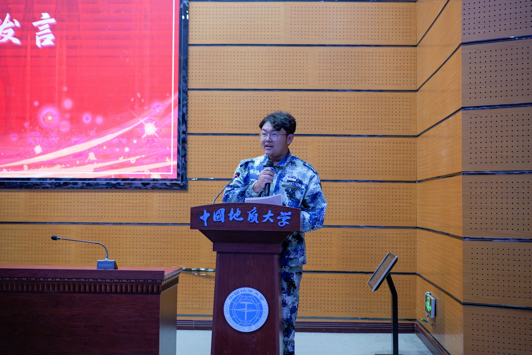 本科生新生代表、石油工程专业薛家铭跟同学们分享了他与地质工作的结缘以及对地大资源学院的热爱。他谈到,来到资源学院,是爱我所爱的青春奔赴,更是一场实现梦想的青春起航!他号召,所有新生同学们,去学习、去实践、去科研、去成长,在学院的托举下、在老师们培养下、在祖国的大好河山中,去领略地质奥秘,锤炼报国本领,叩开科学殿堂,拥抱资源、拥抱祖国、拥抱时代。
