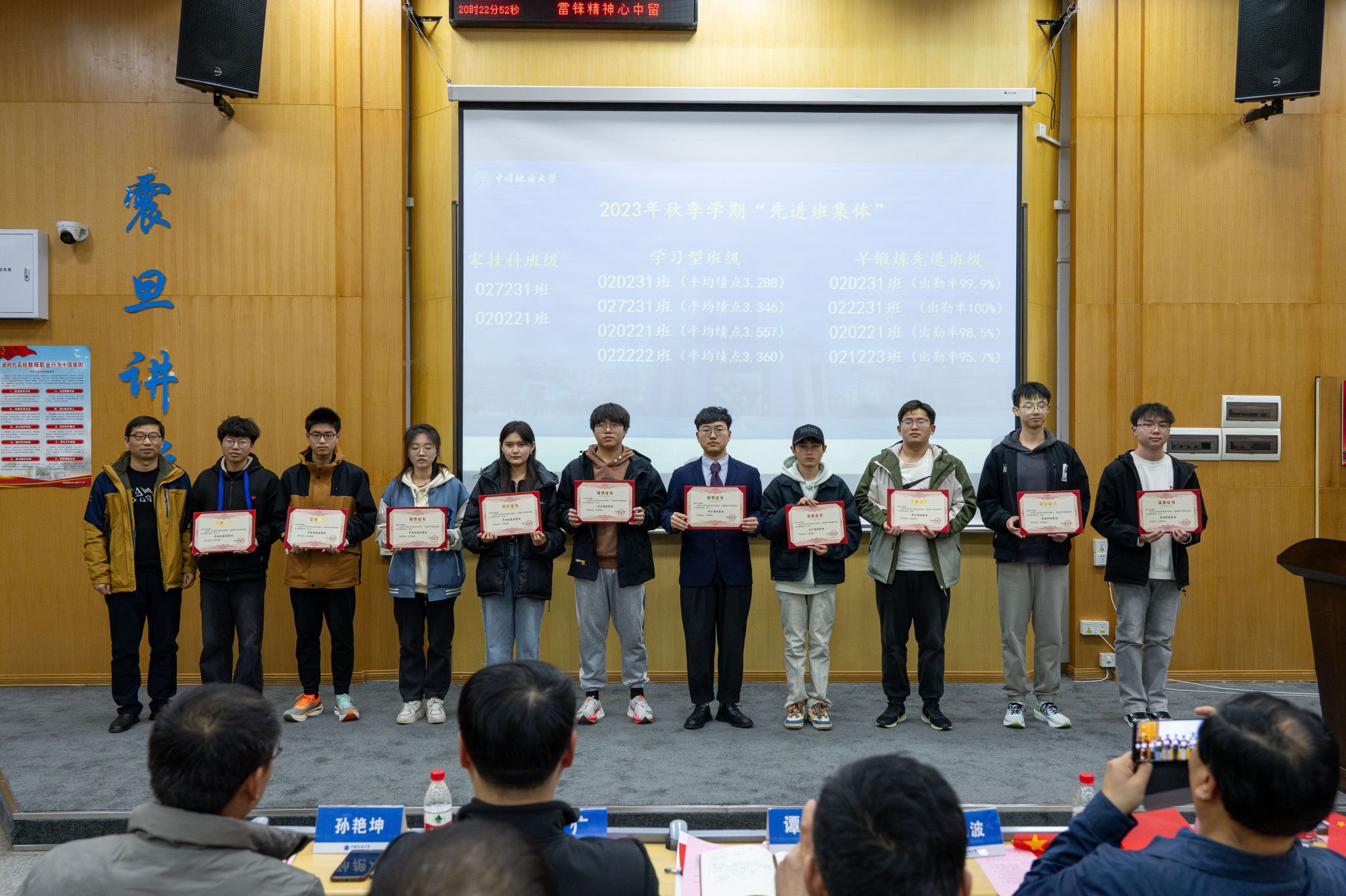 零挂科班级027231班班主任梅红波、020221班班主任张鹏飞分别为2023级、2022级“学习之星”获奖同学颁发荣誉证书。