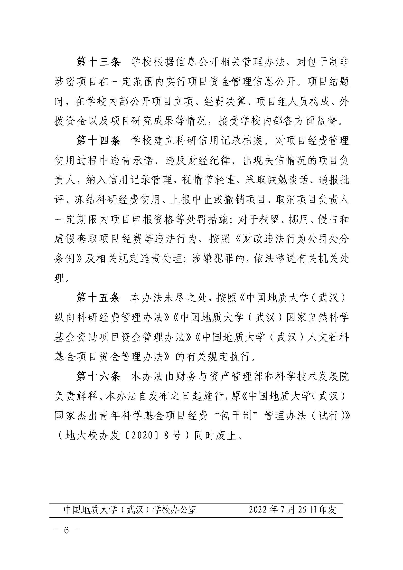 中国地质大学(武汉)科研项目经费“包干制”管理办法(暂行)
