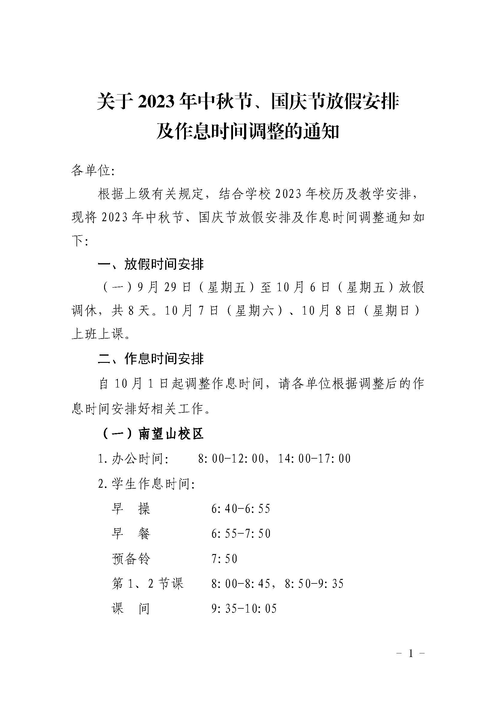 关于2023年中秋节、国庆节放假安排及作息时间调整的通知