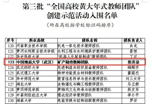 矿产勘查教师团队入选第三批“全国高校黄大年式教师团队”
