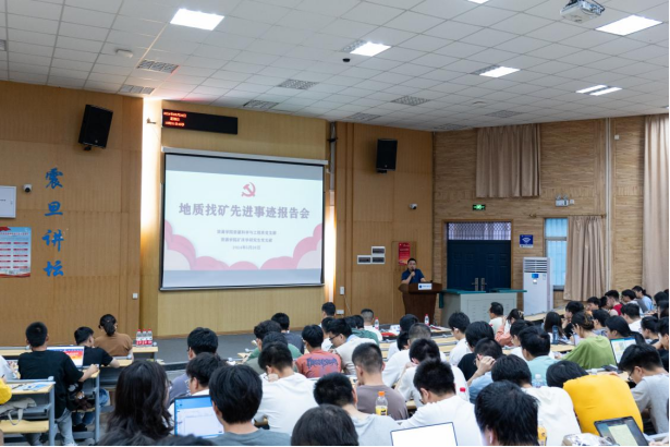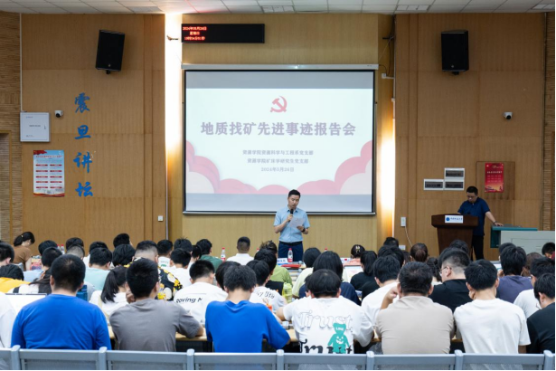 (通讯员陈宇 摄影李卓华)为深入学习贯彻习近平总书记重要回信精神,大力弘扬地质工作者的优良传统,引导学生坚定专业报国理想,5月26日,资源学院举办地质找矿先进事迹学习报告会暨“指南针”校友论坛。紫金矿业集团多宝山铜业股份有限公司总经理张立中校友,学院党委副书记谭文伦,资源科学与工程系党支部书记付乐兵、副主任李占轲,校友与社会合作处丁苗苗,教师代表宫勇军、熊索菲,辅导员霍少孟、彭鑫,2021级、2022级本科生参加报告会。报告会由资源科学与工程系教师党支部、矿床学研究生党支部联合承办,付乐兵主持报告会。